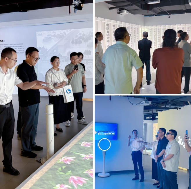 参观人员还体验了《流淌的文明》运河主题VR大空间,并走进豆神动漫视界数字文化产业技术研究院,观赏了《济宁运河文化长卷》、《孔子六艺》、《鲤鱼跃龙门》、《虚拟电梯》、《数字人》等数字项目。赵立军董事长结合实际应用场景和商业项目案例,向参观人员详细介绍了豆神动漫在VR/AR、裸眼3D、互动投影、交互游戏、数字孪生等前沿核心技术的研发成果。